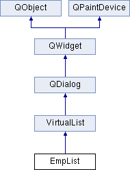 | | EmpList (QWidget *, Qt::WindowFlags=0) |