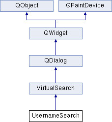 | | UsernameSearch (QWidget *, Qt::WindowFlags=0) |