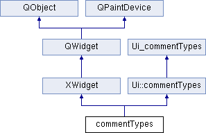| | commentTypes (QWidget *parent=0, const char *name=0, Qt::WindowFlags fl=Qt::Window) |