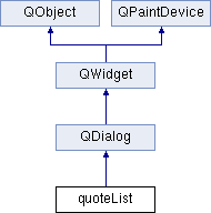 | | quoteList (QWidget *parent=0, const char *name=0, bool modal=false, Qt::WindowFlags fl=0) |