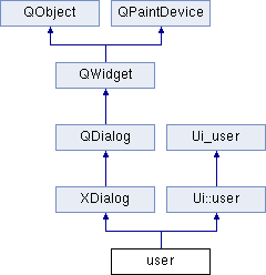 | | user (QWidget *parent=0, const char *=0, Qt::WindowFlags fl=0) |