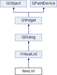 | | itemList (QWidget *, Qt::WindowFlags=0) |